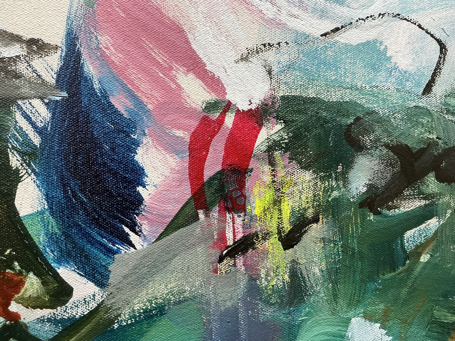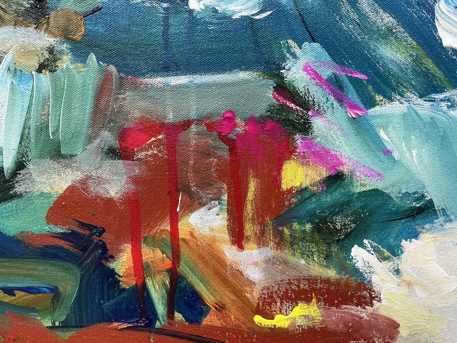 As I worked on this piece, I imagined the raw, unfiltered spirit of the wild—lush greens pushing through cracks, the rush of wind weaving through trees, the dance of color in a world that refuses to be tamed. Every brushstroke carries that movement, that essence of nature taking a deep breath, expanding, and thriving despite it all.
