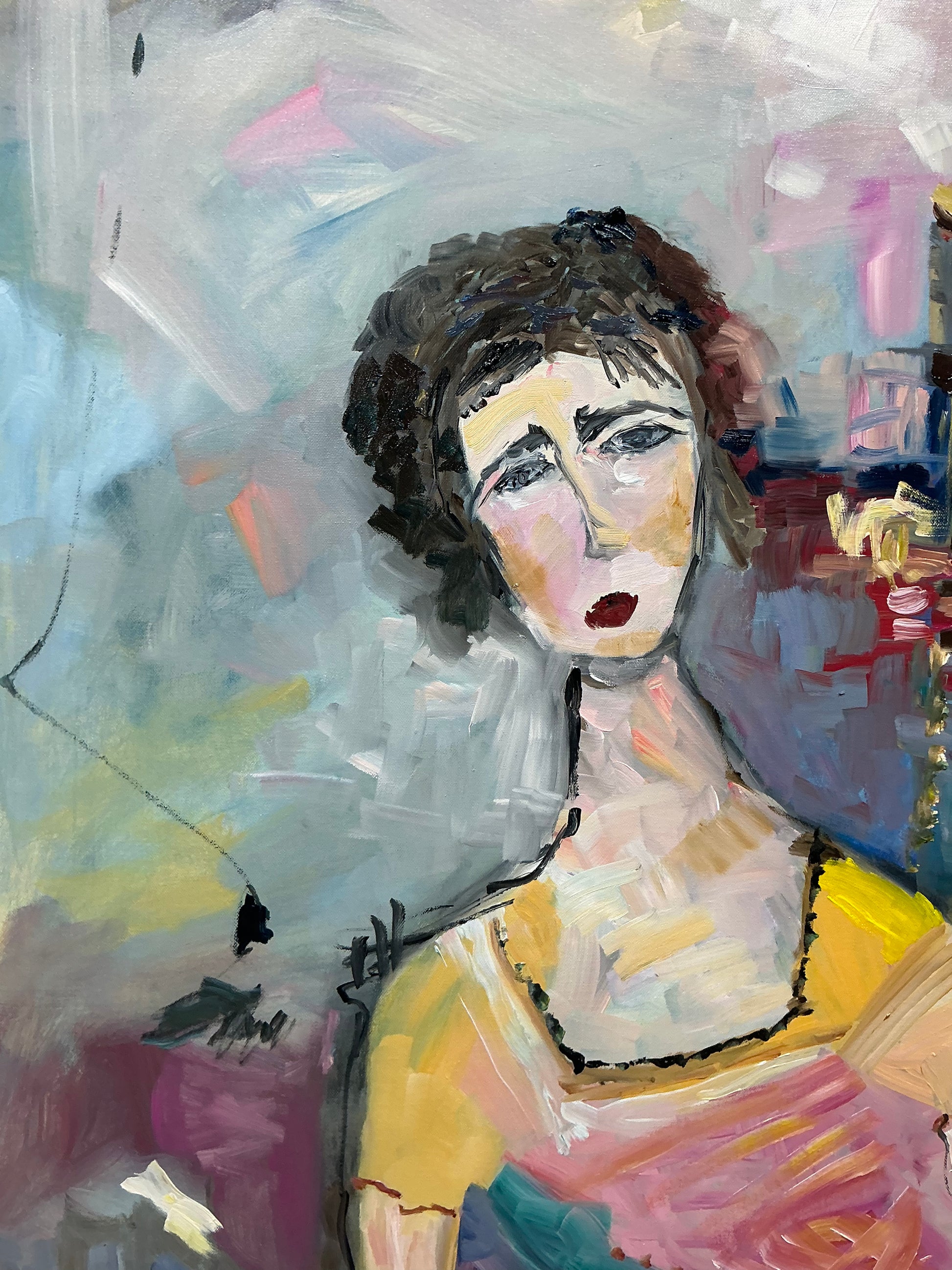 Painted intuitively in oil, with expressive brushwork and layered tones, the portrait captures both presence and emotion. The richness of the medium gives depth to her character and to the story she carries.