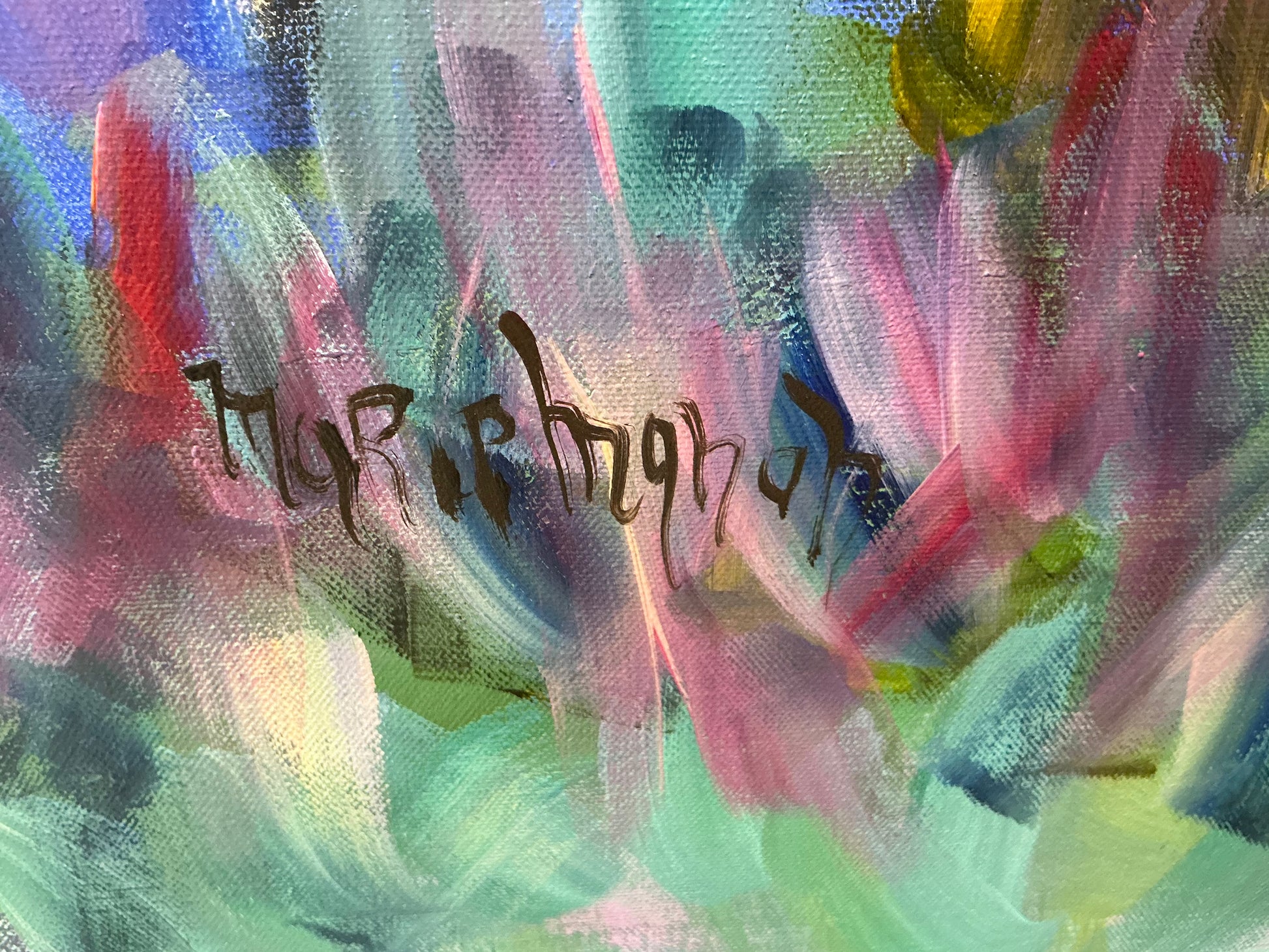 Artwork preparation: This artwork will be mounted on a 1.5" gallery depth frame, with the painted canvas elegantly wrapped around the sides for a seamless, museum quality finish. The artwork is then professionally packaged to ensure it arrives in perfect condition.