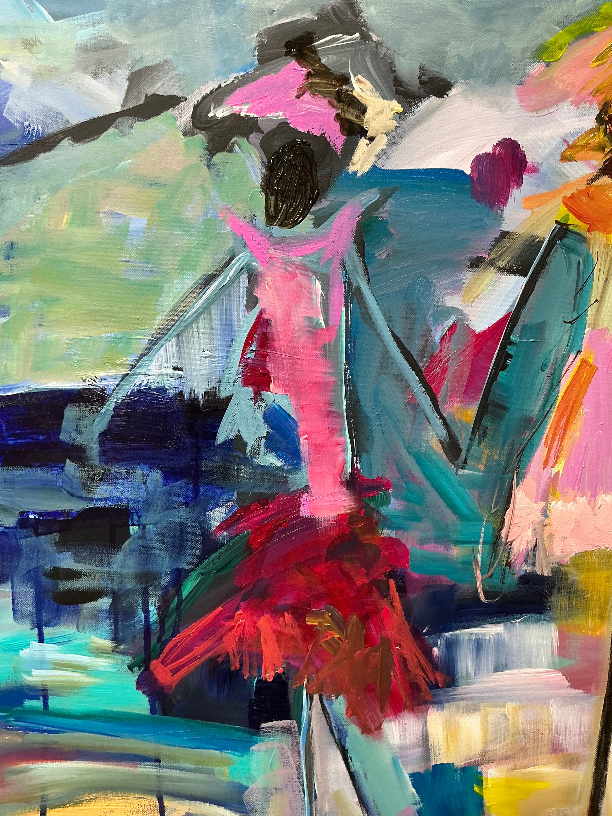 These ballerinas are clearly having too much fun. They dance freely, without rules or pressure. This painting is about joy, movement, and letting go.