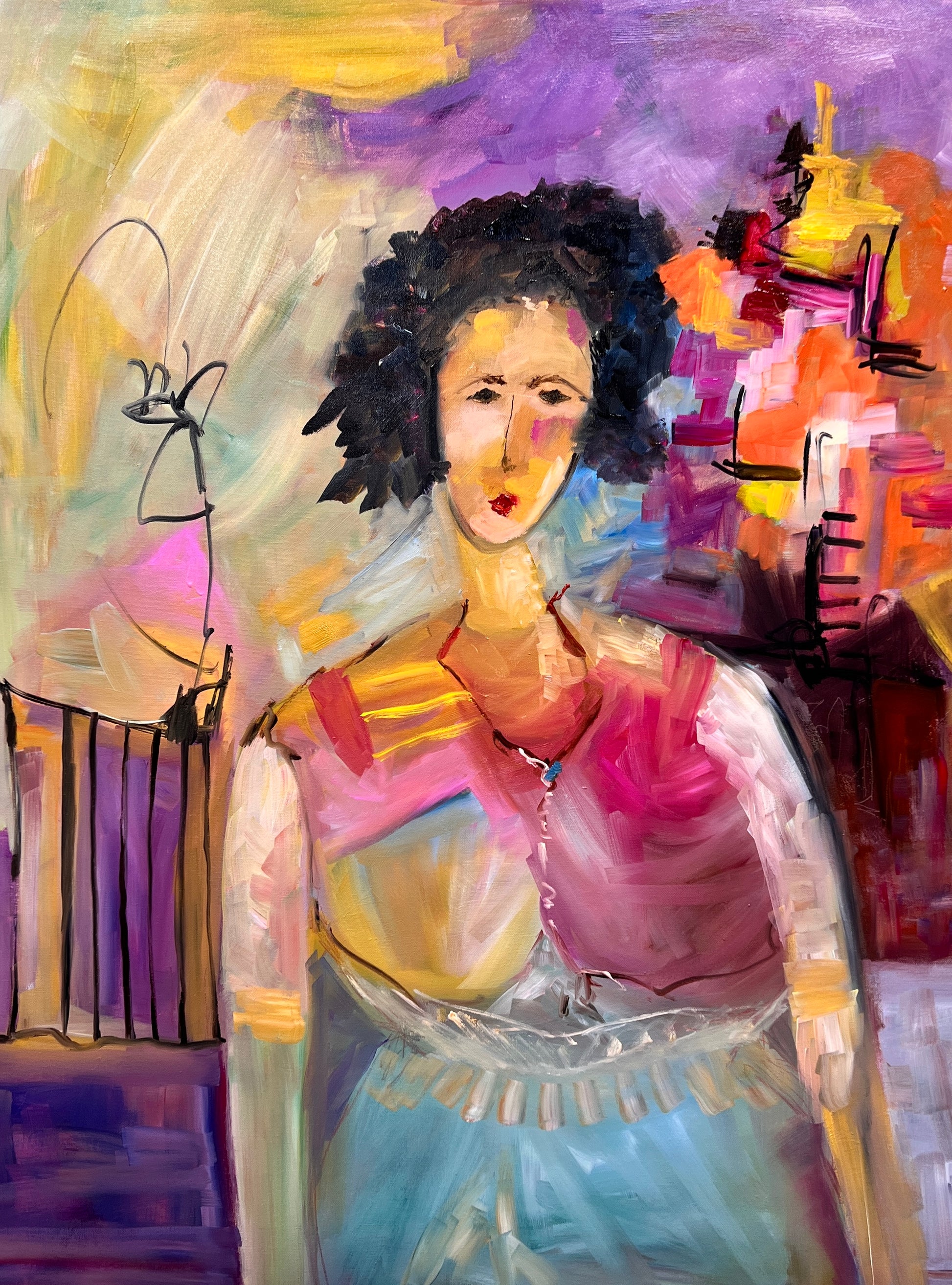 Every art lover knows the magic of a true statement piece — and this pillow brings that magic to life. Inspired by my original painting "La Princesse du Village", the print reflects a vibrant pulse and colours. Its expressive design instantly elevates any room, adding artistic depth to a sofa, bed, or accent chair. Crafted from a premium cotton/linen blend and made entirely in Canada, this pillow blends modern style with exceptional quality.