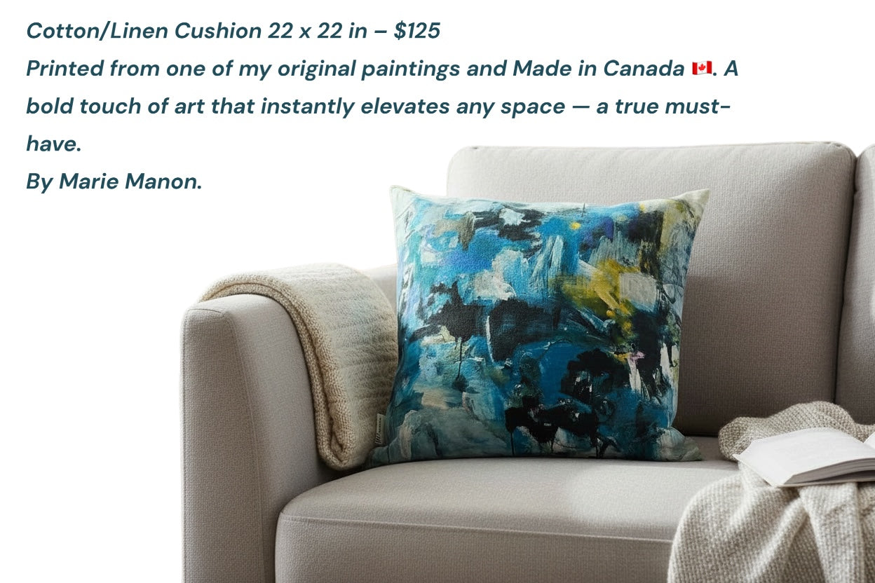 Every art lover knows the magic of a true statement piece — and this pillow brings that magic to life. Inspired by my original painting Living City, the print reflects the vibrant pulse, colour, and movement of urban life. Its expressive design instantly elevates any room, adding artistic depth to a sofa, bed, or accent chair. Crafted from a premium cotton/linen blend and made entirely in Canada, this pillow blends modern style with exceptional quality.