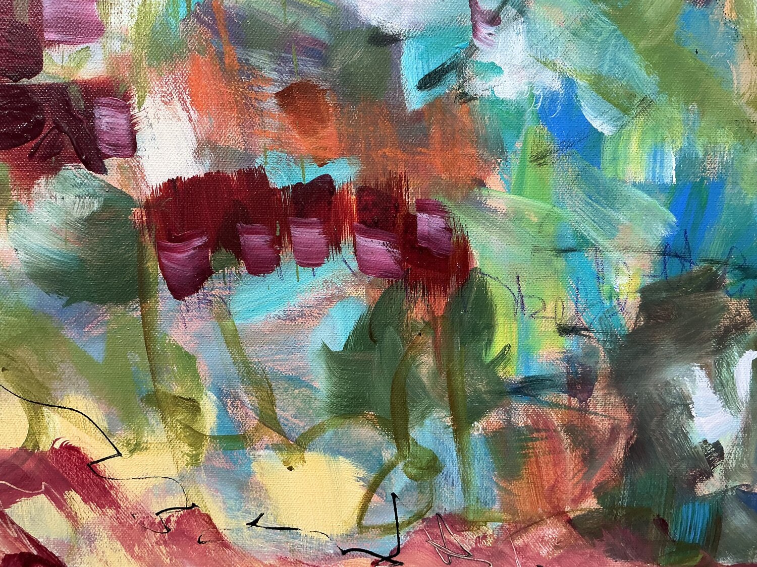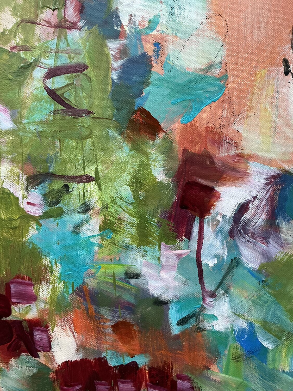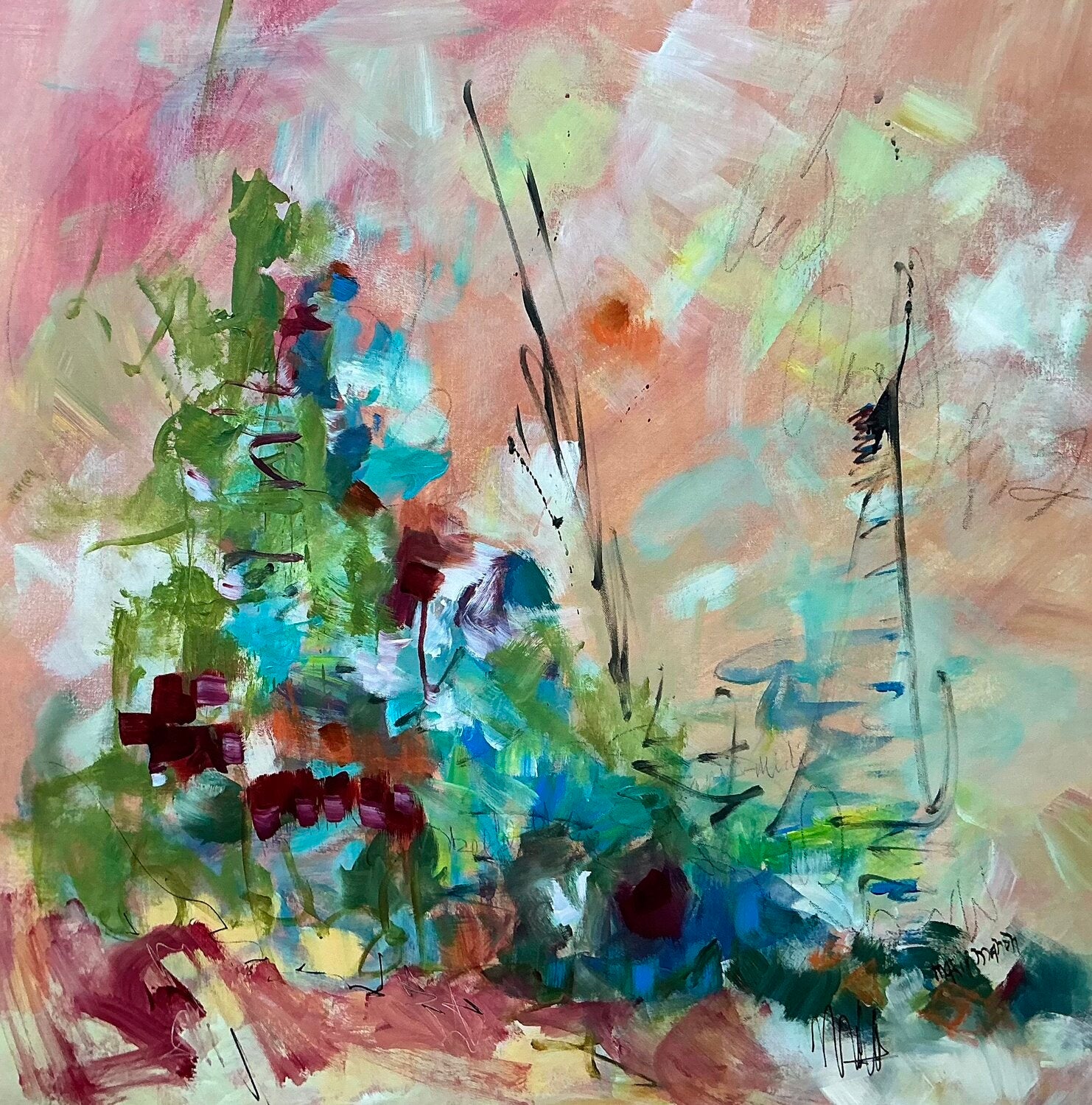 This painting is about slowing down, letting the eye wander, and noticing the small, vibrant moments that often pass unnoticed. It reflects a quiet pause, where colors breathe freely and the mind feels light, open, and present.