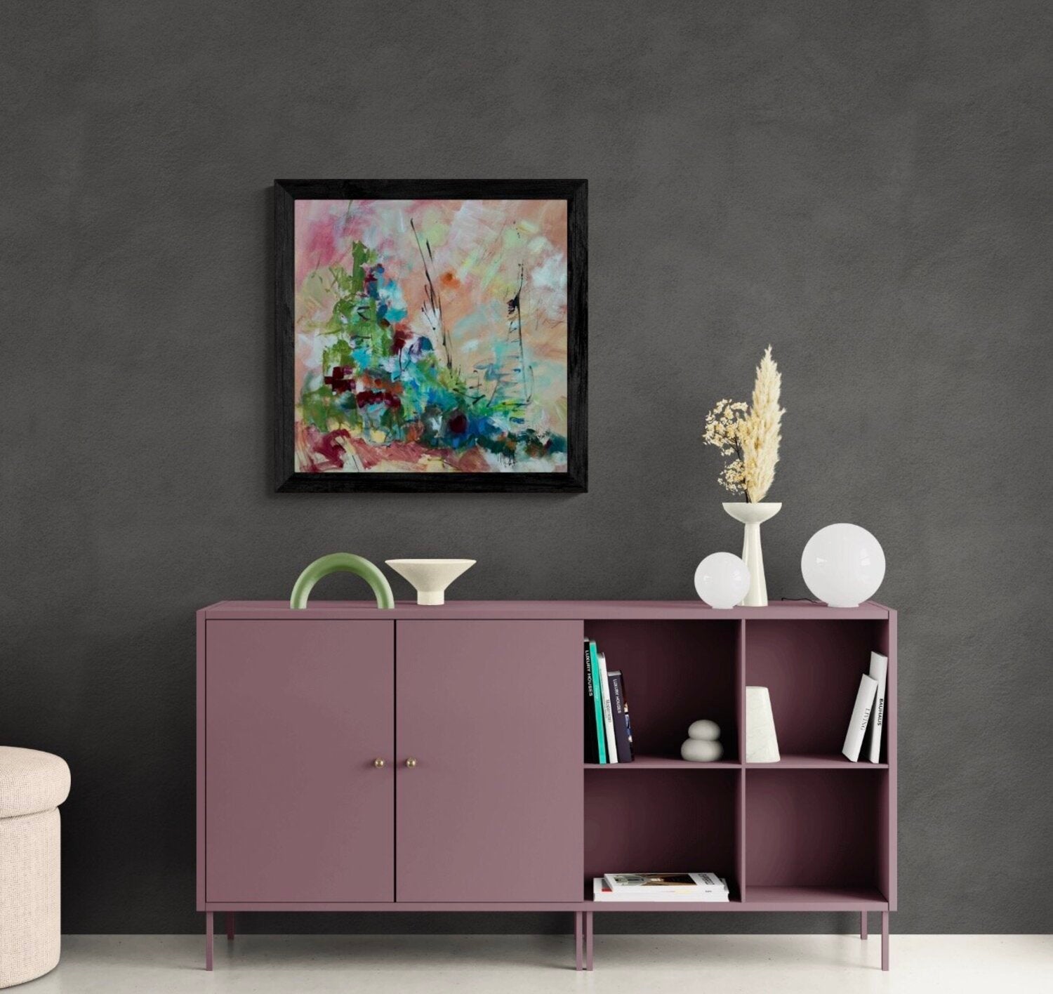 Artwork preparation: This artwork will be mounted on a 1.5" gallery depth frame, with the painted canvas elegantly wrapped around the sides for a seamless, museum quality finish. The artwork is then professionally packaged to ensure it arrives in perfect condition.