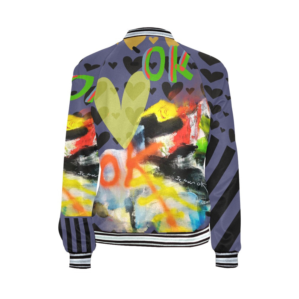 This Bomber Jacket features prints from Marie Manon Corbeil's original paintings, transforming fashion into a canvas of vibrant artistry.