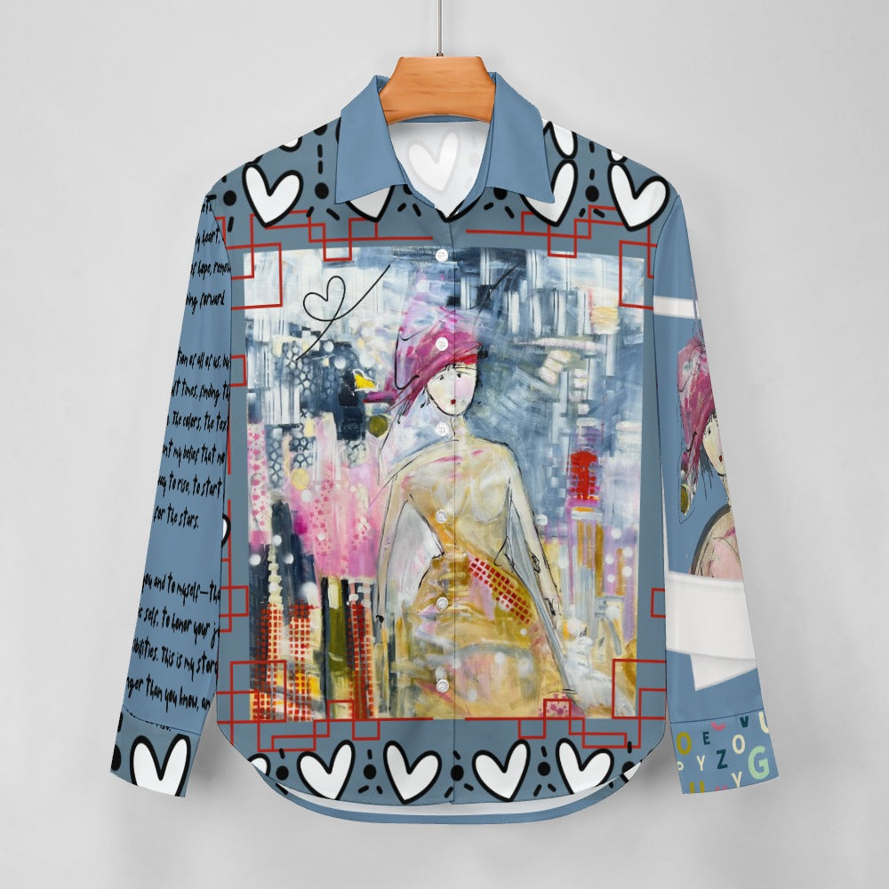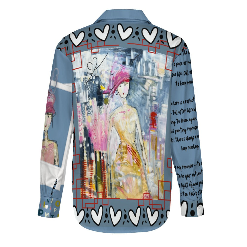 This Women's Long Sleeve Silk Shirt features prints from Marie Manon Corbeil's original paintings, transforming fashion into a canvas of vibrant artistry.