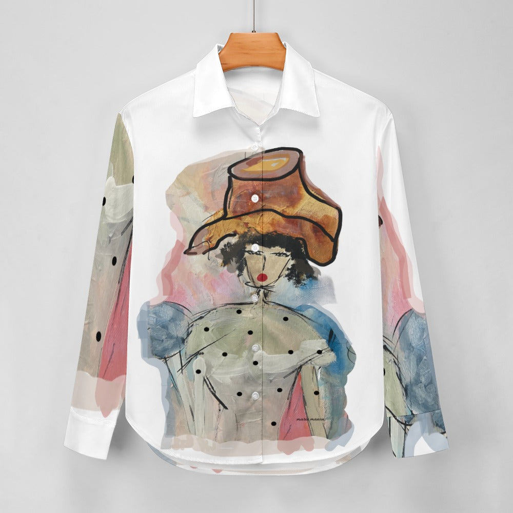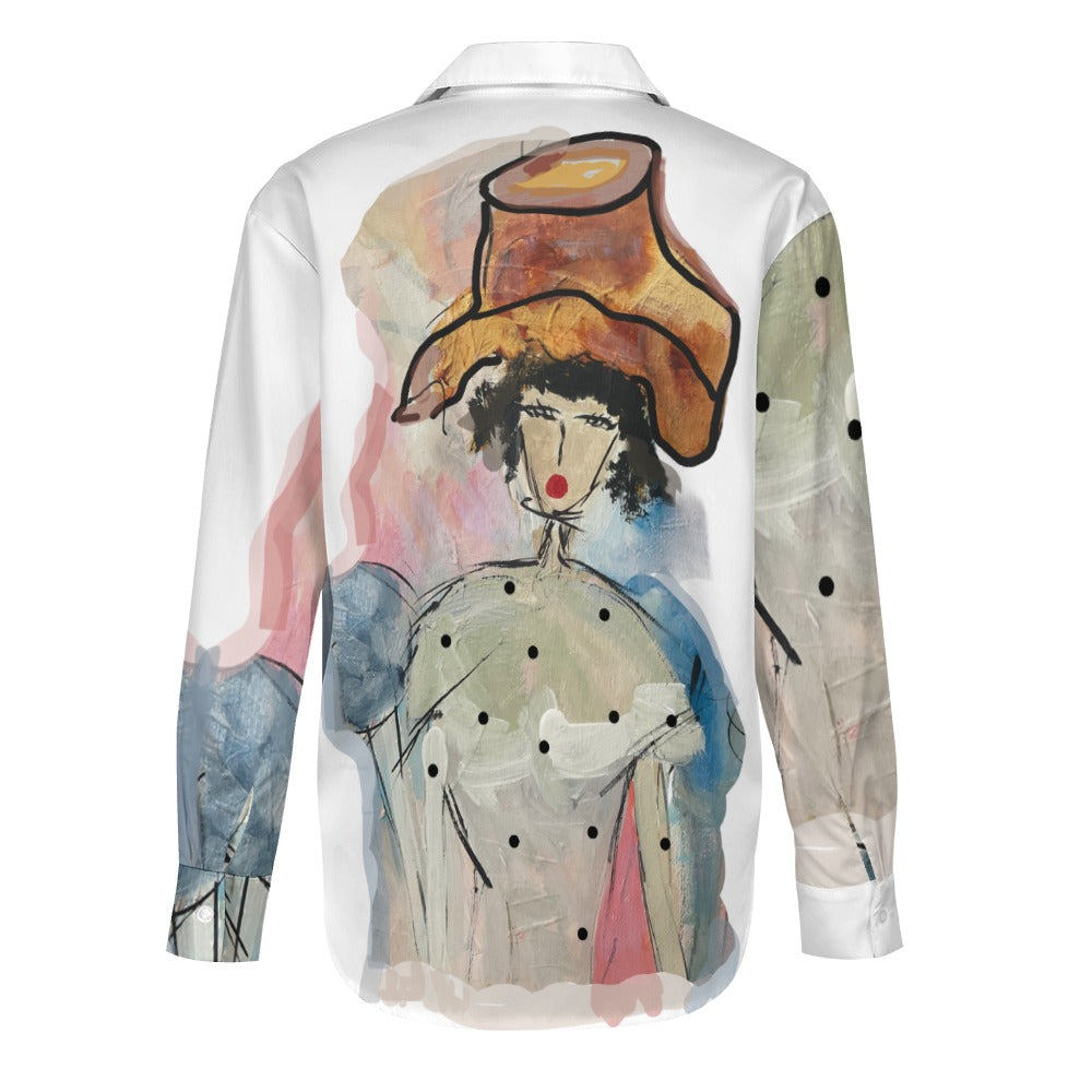 This Women's Long Sleeve Silk Shirt features prints from Marie Manon Corbeil's original paintings, transforming fashion into a canvas of vibrant artistry.