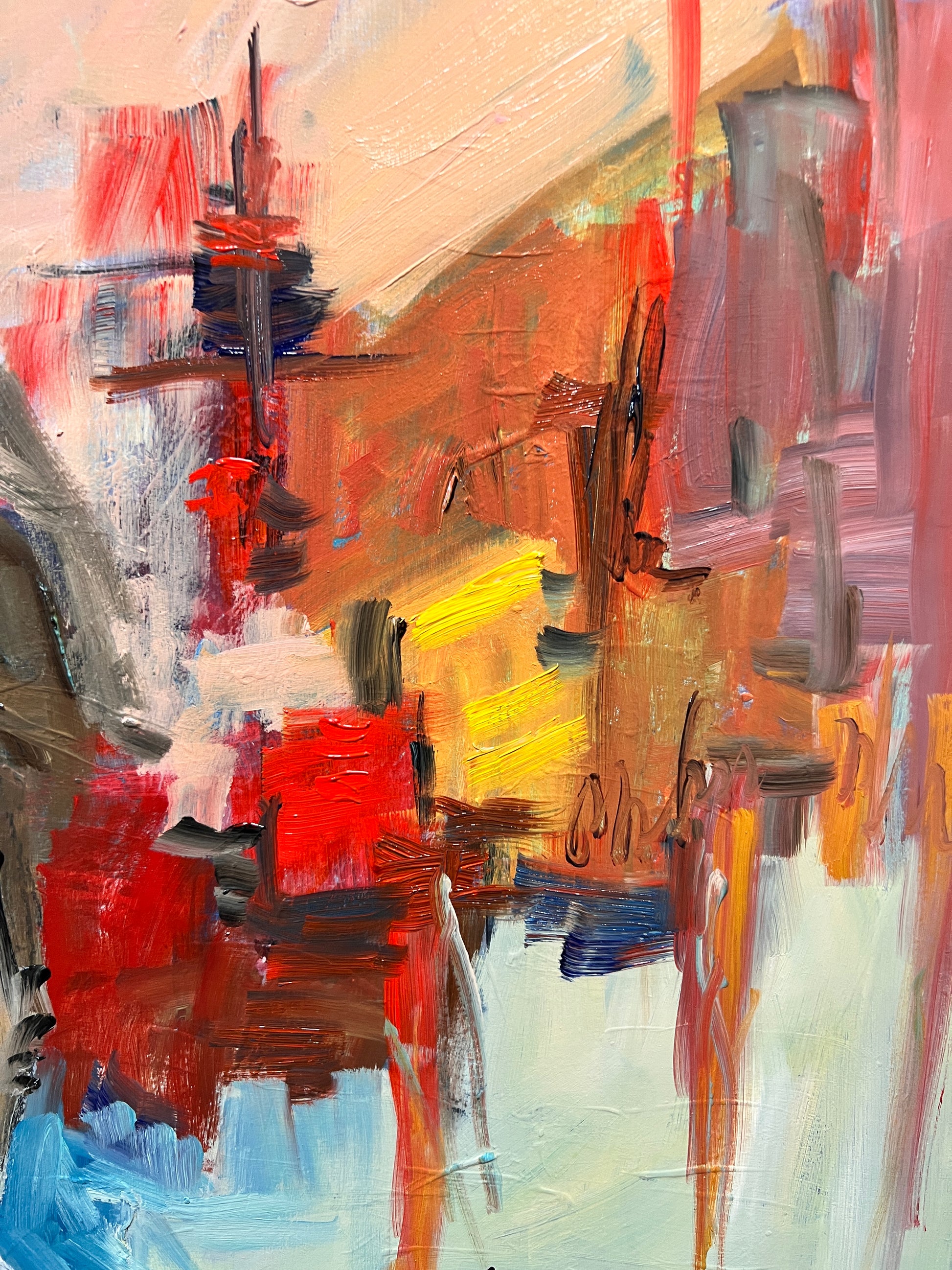 Artwork preparation: This artwork will be mounted on a 1.5" gallery depth frame, with the painted canvas elegantly wrapped around the sides for a seamless, museum quality finish. The artwork is then professionally packaged to ensure it arrives in perfect condition.